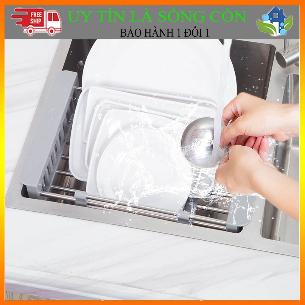 [ĐÃ RẺ LẠI CÓ QUÀ] Gía khay đựng bát đĩa hoa quả có thể co giãn được đặt trên bồn rửa bát tiện lợi