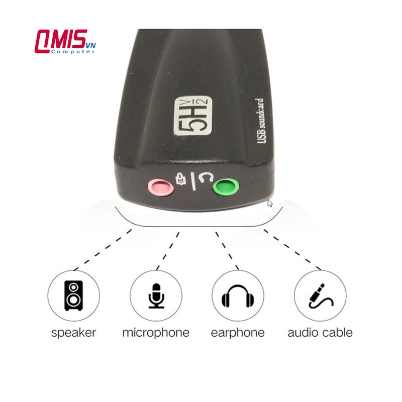 🌹Bộ chuyển đổi âm thanh qua cổng USB Sound 5Hv2 USB 7.1 Channel Sound Card 12 kênh với giao diện âm thanh 7.1 sử dụng cho máy tính để bàn và laptop gồm 1 đầu USB và 1 đầu để cắm giắc chia âm thanh. Chỉ cần cắm cổng USB vào máy tính không cần yêu cầu driver như các thiết bị thông thường, âm thanh sẽ được phát ra ngay lập tức và đưa vào môi trường âm thanh 7.1 chất lượng cao.🌹Tính năng: Dùng cho laptop, máy tính bàn bị hư hỏng card âm thanh tích hợp trên mainboard (Không sửa được hoặc không muốn sửa vì khi sửa làm mất đi zin nguyên bản của máy tăng nguy cơ rủi ro hư hỏng mainboard sau này)