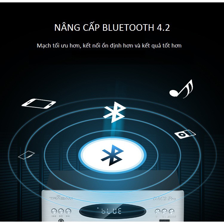 Nối tiếp sự thành công của phiên bản DAC 2 Plus, đầu năm 2019 hãng TRASAM đã giới thiệu phiên bản mới TRASAM DAC 2 PRO với nhiều cải tiến mang tính đột phá. Đáng chú ý nhất đó là hãng đã nâng cấp lên chip giải mã SA9926 hỗ trợ nhạc DSD64, 9018K2M hỗ trợ nhạc 32Bit/192Khz đồng thời nâng cấp Bluetooth lên chuẩn 4.2 biến Dac 2 Pro thành DAC nghe nhạc lossless bluetooth chất lượng cao, hỗ trợ đầy đủ các kết nối kỹ thuật số đầu vào Digital Coxial, USB, Optical.Trasam Dac 2PRO có 5 cổng kết nối.