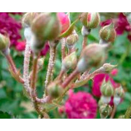 + Phấn trắng cây hoa hồng, sương mai trên bầu bí dưa.