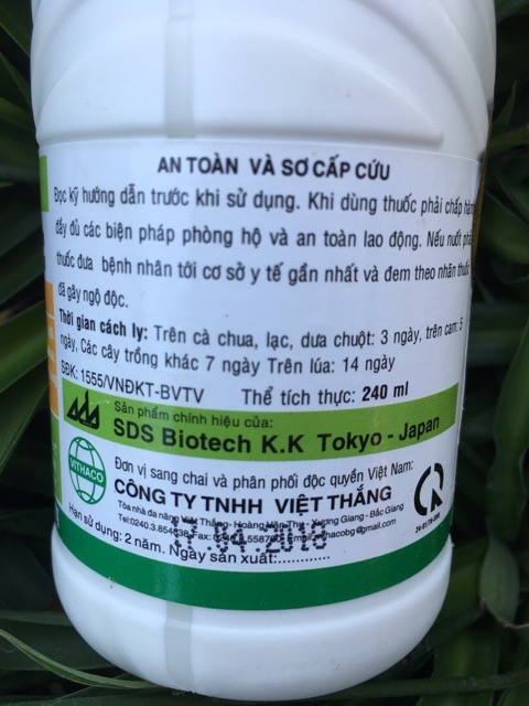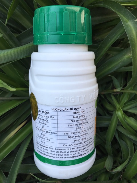 Công dụng: chuyên trị các loại bệnh hại cây trồng như thán thư, phấn trắng, héo cây con, đốm lá, sương mai, mốc sương, bệnh sẹo, giả sương mai, đạo ôn, khô vằn,.....Hướng dẫn sử dụng: hoà tan 20gr/16 lít nước phun cho cây vào sáng sớm hoặc chiều mát.