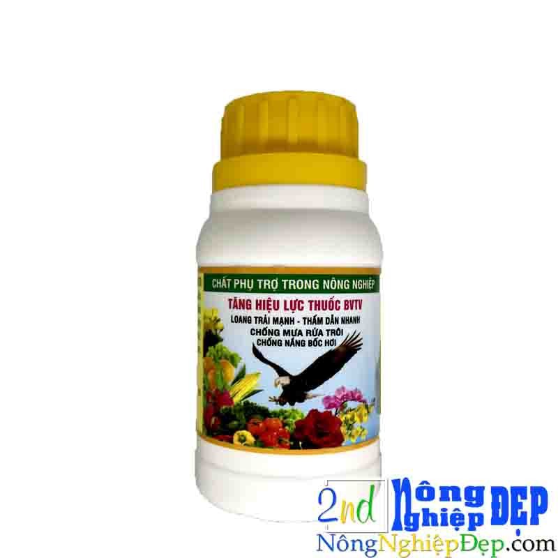 Chất tăng hiệu quả thuốc bvtv là chất trợ lực đặc biệt làm tặng hiệu lực cho thuốc bảo vệ thực vật. Giúp nước phun loang trải đều, thấm dẫn nhanh, lưu dẫn mạnh vào trong tế bào cây trồng, chống mưa rửa trôi và chống nắng bốc hơi. Khắc phục hiện tượng nước phun co cụm thành giọt đọng trên lá, trên hoa, trên quả…