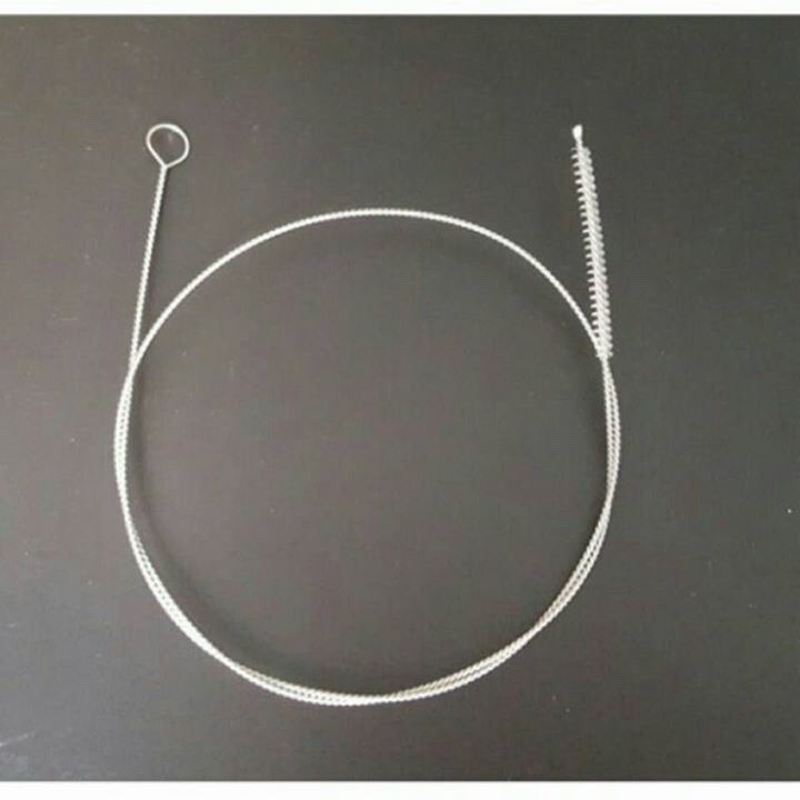 Khách luồn dụng cụ này qua 1 đầu của dây hút để cọ, xong xoay đầu để vệ sinh bên kia của dây hút nhé.