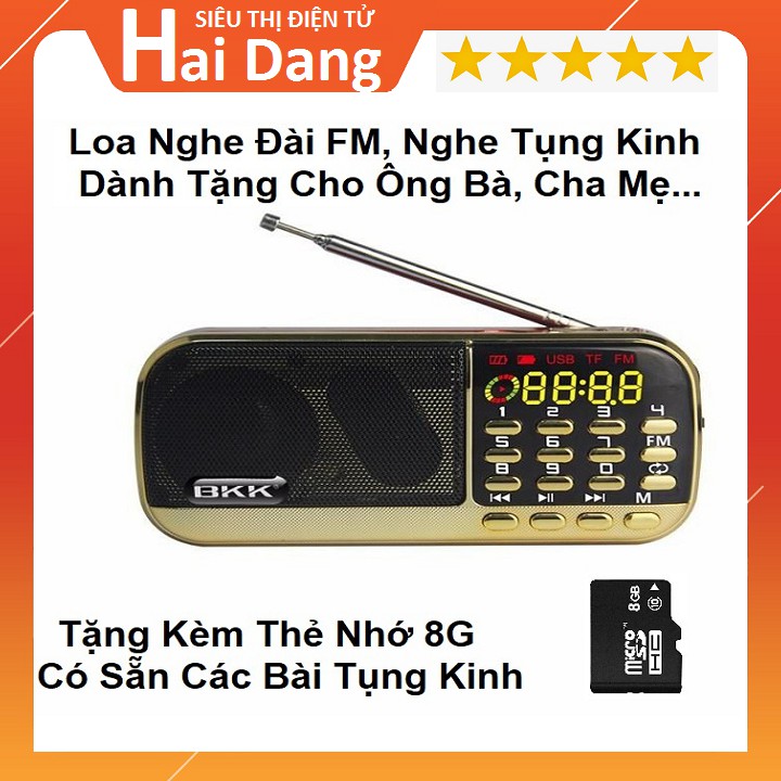 Máy nghe kinh phật thẻ nhớ, USB, nghe đài FM BKK Tặng Kèm Thẻ Nhớ 8G Có Sẵn Các Bài Tụng KinhĐặc điểm nổi bật: