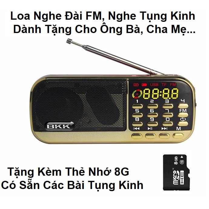Máy nghe kinh phật thẻ nhớ, USB, nghe đài FM BKK Tặng Kèm Thẻ Nhớ 8G Có Sẵn Các Bài Tụng KinhĐặc điểm nổi bật: