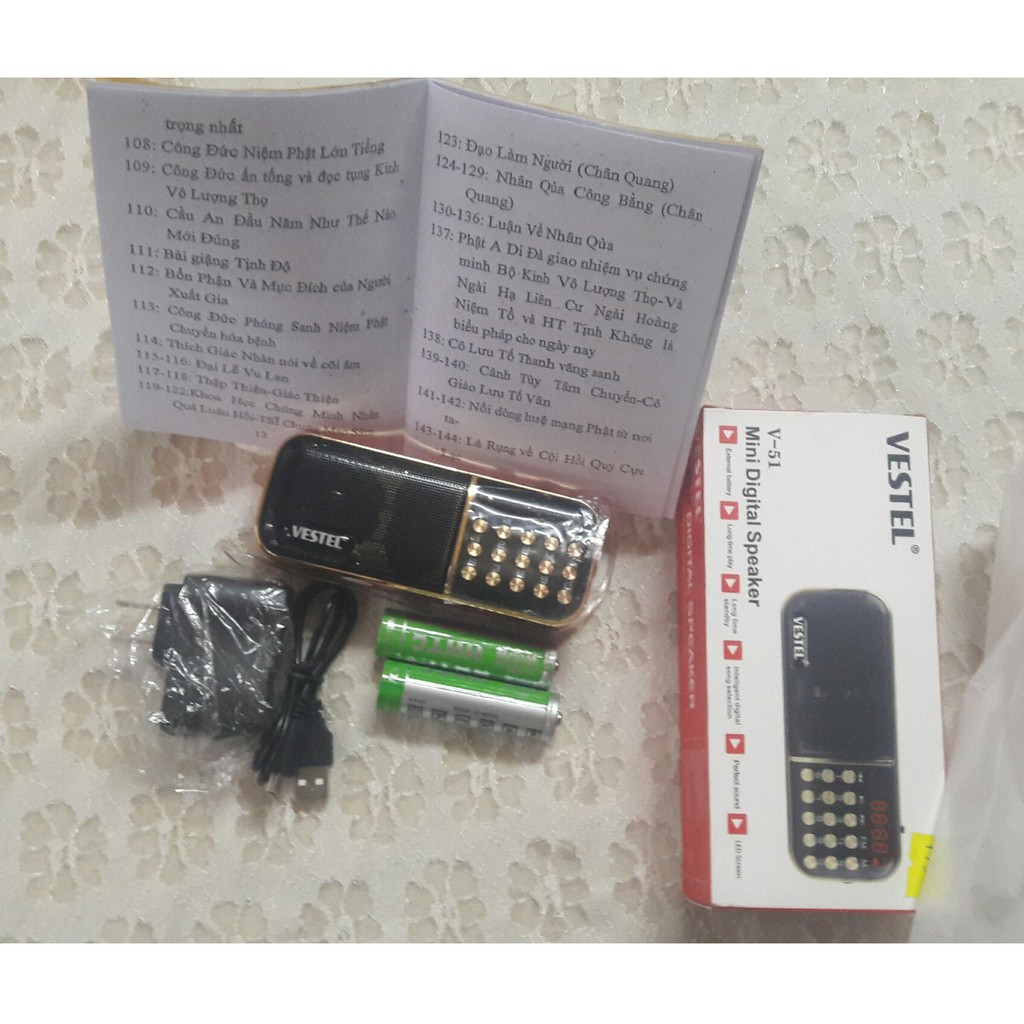 Đài nghe kinh Phật vestel v51+ kèm thẻ nhớ 8GB: bao gồm: đài+ sạc+ 2 pin tích điện+ 1 thẻ nhớ 8g)1. Máy cắm được 2 thẻ nhớ: giúp người dùng linh hoạt theo sở thích.