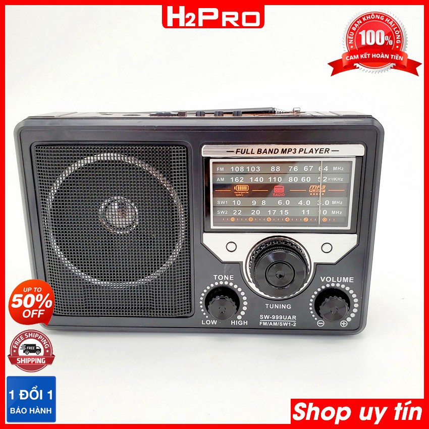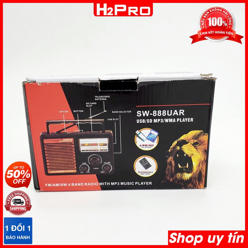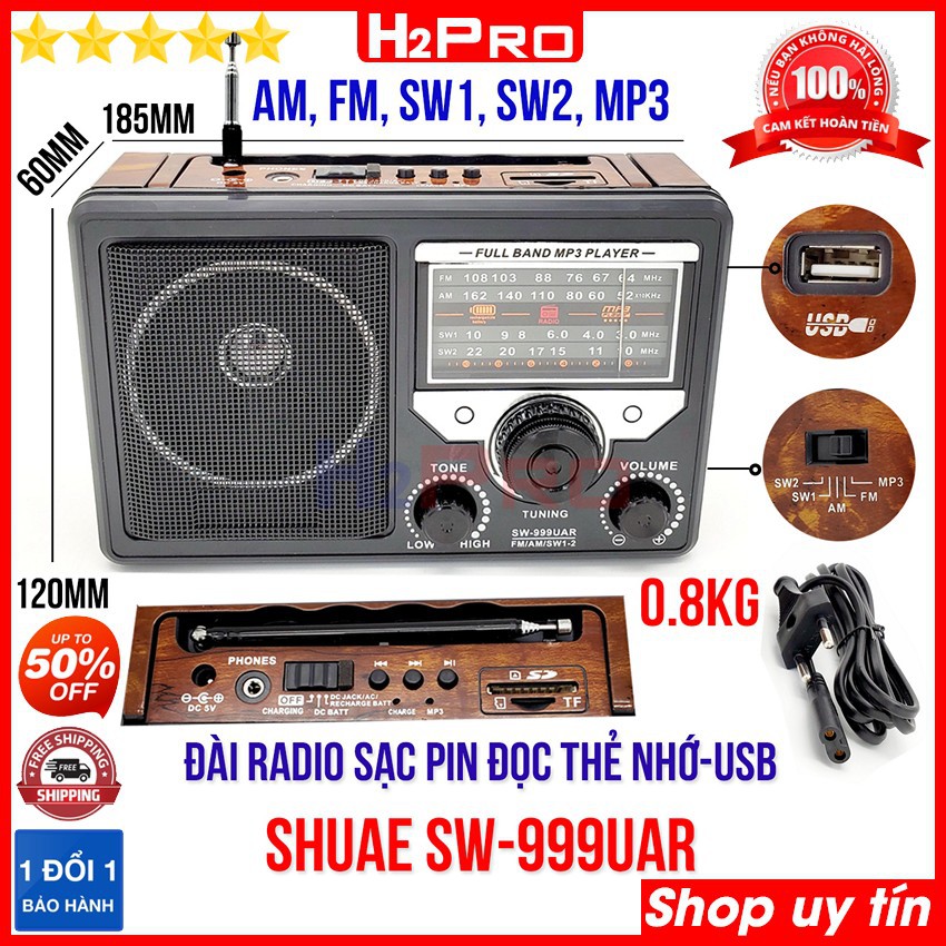 Đài radio 4 bands FM-AM-SW1-SW2 SHUAE SW-888UAR - SW-999UAR H2Pro cao cấp-tích hợp Mp3-USB-Thẻ nhớ-jack tai nghe (1 chiếc), đài radio FM đa năng kiêm máy nghe nhạc-kiểu dáng cổ điển (tặng dây sạc 30K)Máy radio là dòng máy nghe nhạc, đài rất thông dụng với mức giá vừa phải mà chất lượng rất tốt, đã được rất nhiều người sử dụng tin dùng và yêu mến. Đài radio sạc điện bắt được 4 tần số, hỗ trợ đọc USB, thẻ nhớ, sử dụng như máy nghe nhạc mp3. Đài fm đang được Thế giới công nghệ H2Pro phân phối và bán lẻ, giao hàng toàn quốc là hàng chất lượng cao, sử dụng tốt.