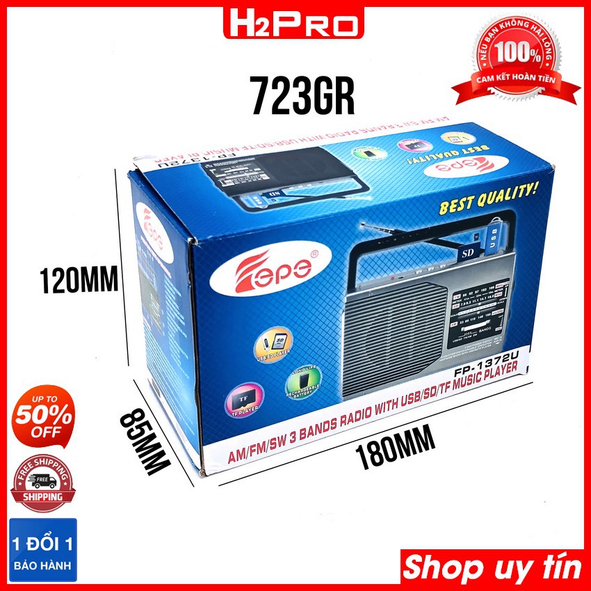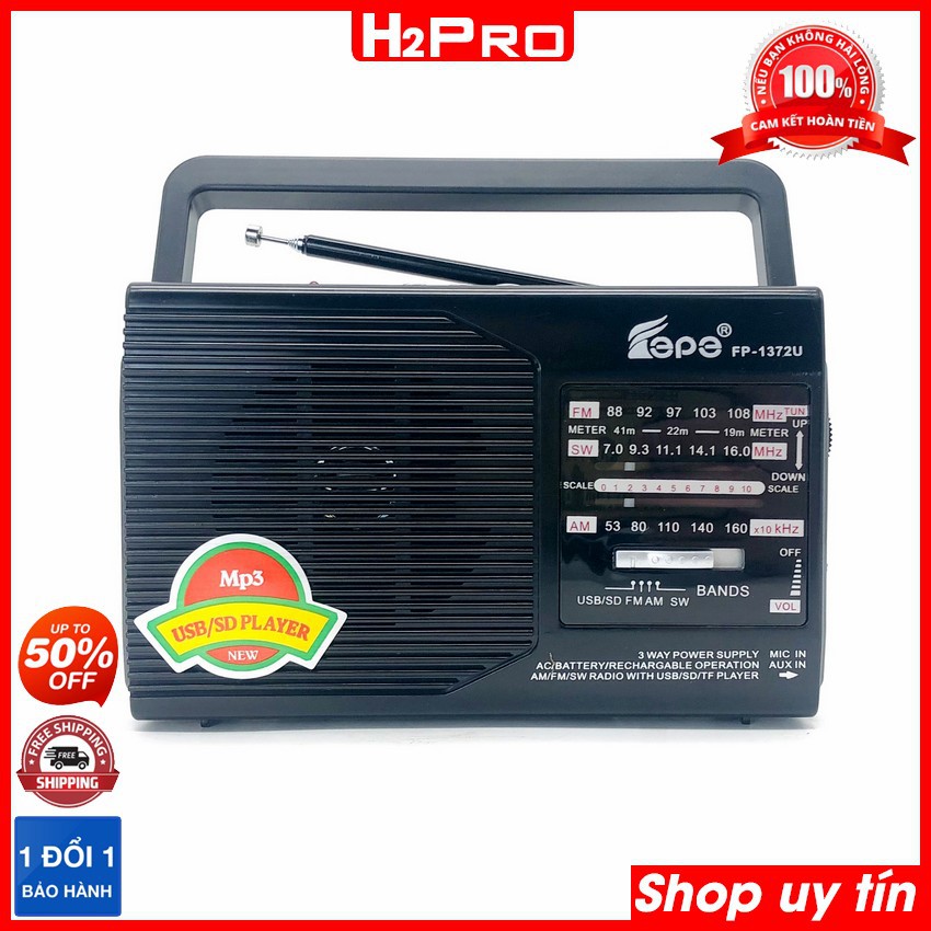 Đài radio Fepe FP-1372U H2Pro 3 band AM-FM-SW, đài radio sạc điện, có USB-Thẻ nhớ làm máy nghe nhạc mp3