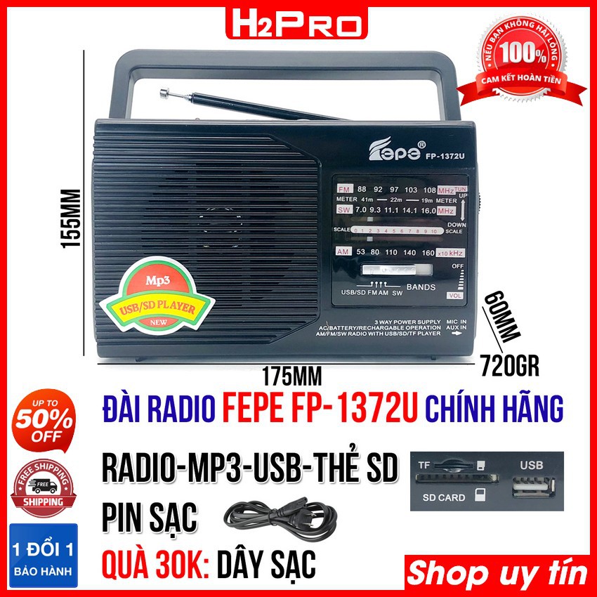 Thiết Bị Âm Thanh > Máy nghe nhạc > Radio & Cát-sét || Đài radio Fepe FP-1372U H2Pro 3 band AM-FM-SW, đài radio sạc điện, có USB-Thẻ nhớ làm máy nghe nhạc mp3Còn hàng