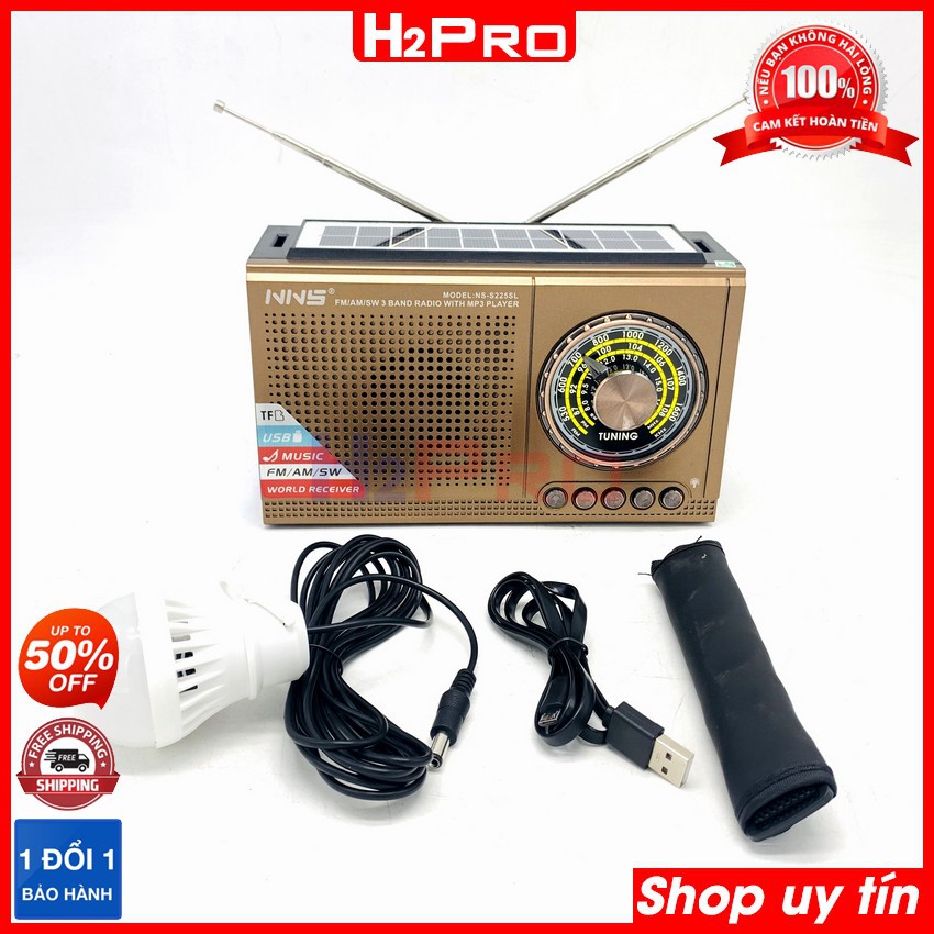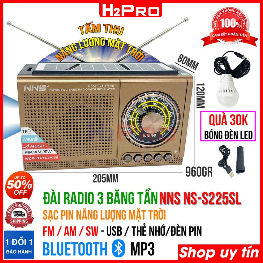 ĐÀI RADIO FM-AM-SW H2Pro NS-S225SL pin sạc năng lượng mặt trời, đài radio tích hợp loa Bluetooth-USB-Thẻ nhớ-đèn pin