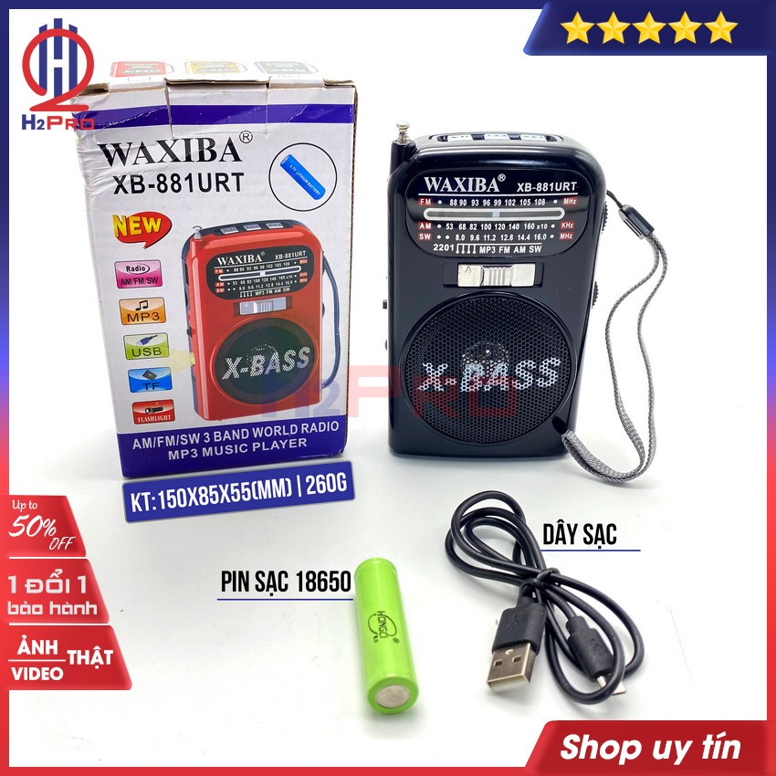 Đài radio FM-AM-SW WAXIBA XB-881URT H2Pro đa năng-Nhạc Mp3 USB/Thẻ nhớ-Đèn pin-Pin sạc, đài radio mini cao cấp giá rẻ (Quà 50k-pin sạc 18650)Đài radio FM-AM-SW WAXIBA XB-881URT là sản phẩm nổi bật trong dòng đài radio Trung Quốc giá rẻ trên thị trường. So với các dòng đài giá rẻ khác, đài radio FM-AM-SW WAXIBA XB-881URTđược sản xuất kỹ lưỡng hơn từ chất liệu đến chất lượng. Sản phẩm đang được Thế Giới Công Nghệ H2pro phân phối và bán lẻ trên toàn quốc.