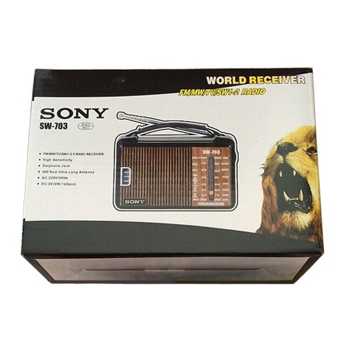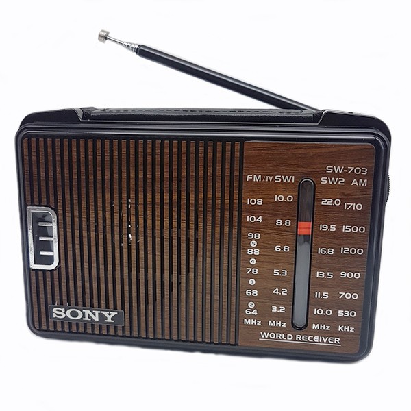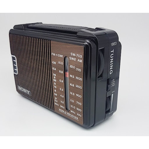 Radio chuyên dụng Sony SW-703, kích thước nhỏ gọn và anh/chị có thể bỏ gọn trong túi, đài có ăng ten bắt sóng, nghe được nhiều kênh, lưu ý này sẽ không có cổng usb để bạn có thể nghe nhạc mp3, đây sẽ là món quà đầy ý nghĩa cho các cụ và những người thích nghe các chương trình trên sóng radio.Thông số kỹ thuật: