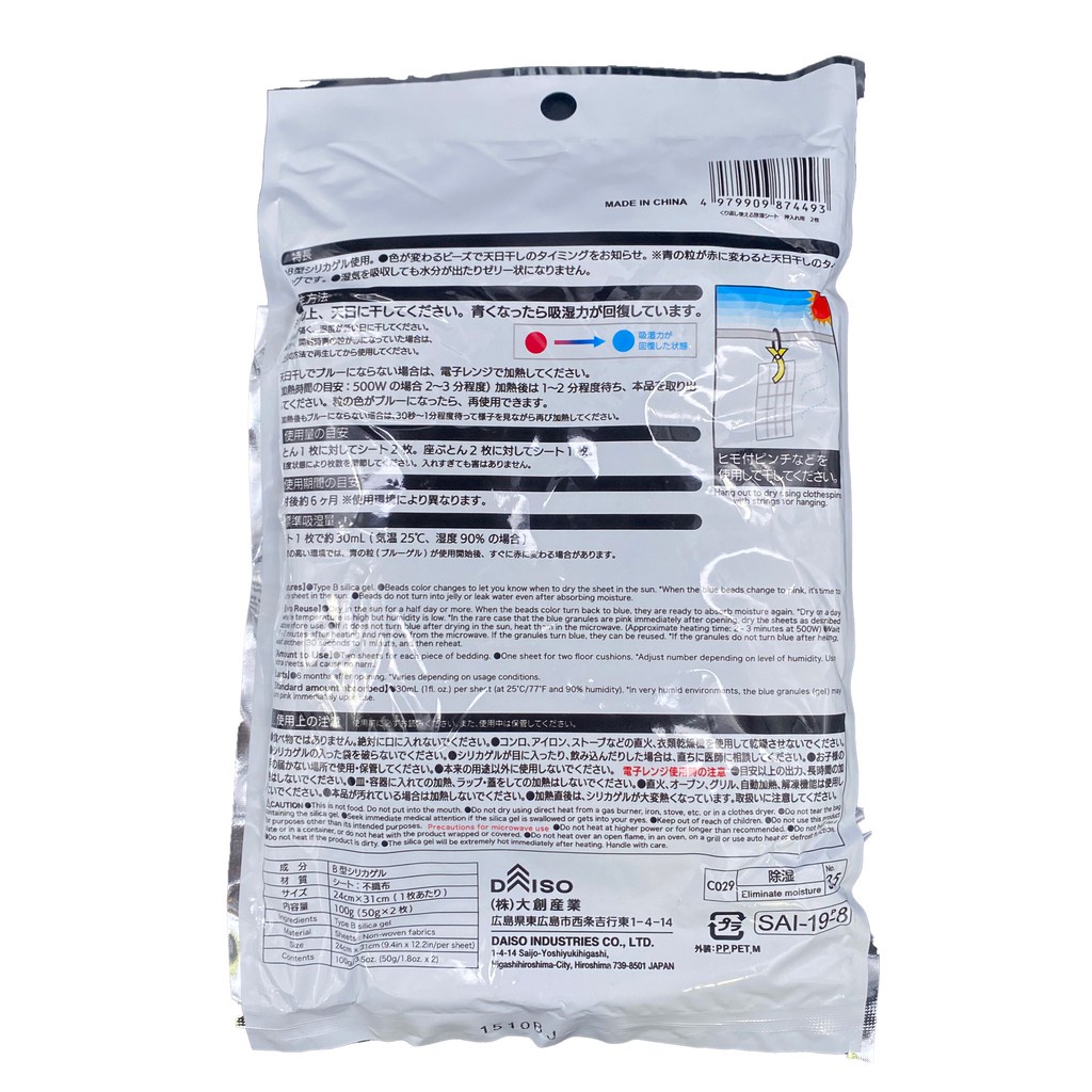 Daiso Chất Hút Ẩm dùng trong tủ quần áo có thể tái sử dụng---------------------------------------------------------------------------------------------------