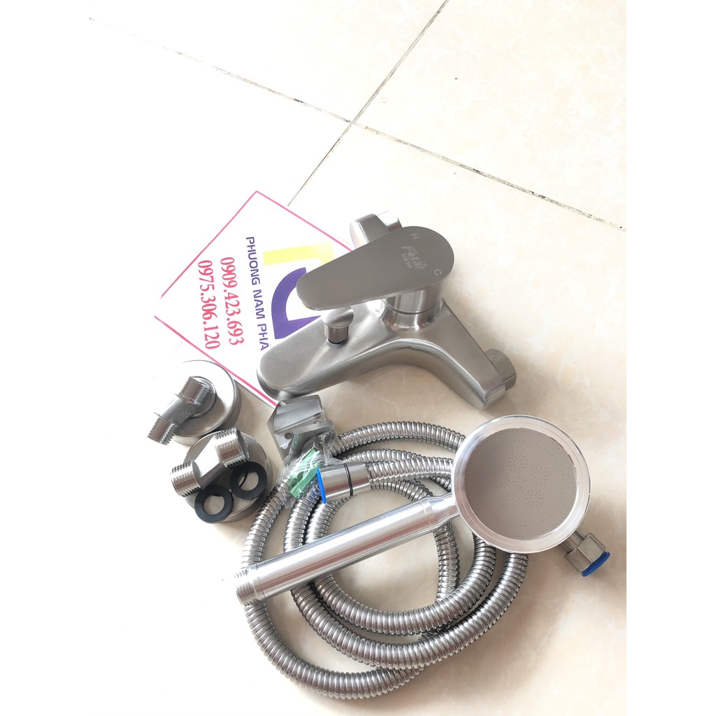 - Phân loại củ+ts inox+dây cài: gồm củ sen tắm inox, dây sen 1,4m, cài sen đúc 2 chế độ lắp, tay sen tắm tròn và cặp chân đế bắt tường