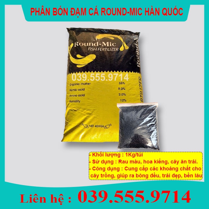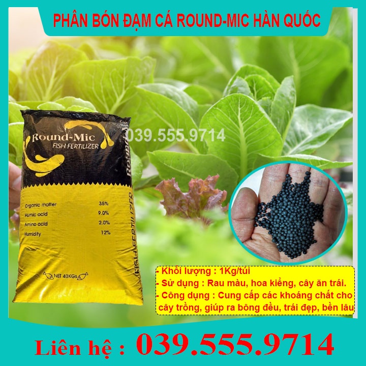 Đạm Cá Hàn Quốc Round Mic ( GÓI 1kg ) - Phân Bón Hữu Cơ Dạng Viên Cung Cấp Dinh Dưỡng Cho Cây