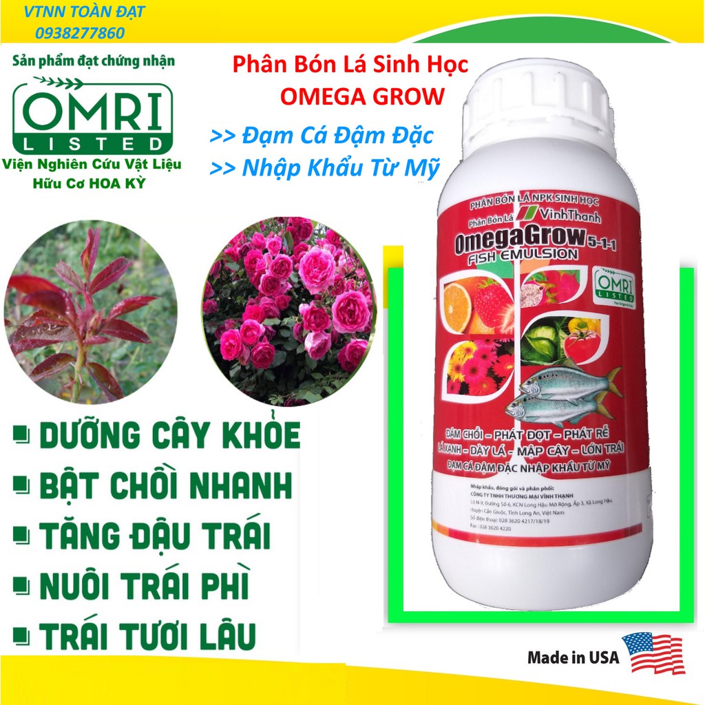 Giới thiệu Đạm Cá Omega Grow 5-1-1 Đậm Đặc Nhập Khẩu Từ Mỹ (500ml), chuyên dùng cho hoa hồng,cây kiểng,rau màu...
