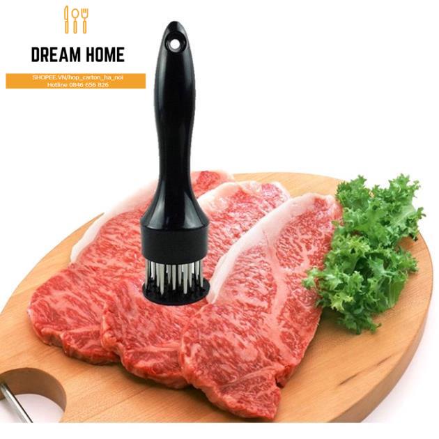 - Cây Dằm Thịt Cầm Tay có tay cầm bằng nhựa dày dặn, chắc chắn, trọng lượng không quá nặng nhưng khi dần sẽ dồn lực mạnh lên miếng thịt. Phần lưỡi dần bằng inox cao cấp, an toàn cho người sử dụng.