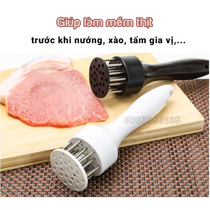 • Dụng cụ làm mềm thịt giúp chị em nội trợ làm mềm thịt, làm mềm bít tết trước khi nướng, xào, tẩm gia vị chiên... một cách nhanh chóng.
