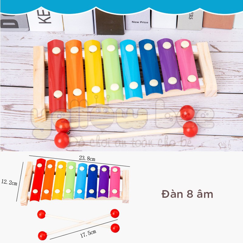 Chất liệu khung gỗ, kết hợp phím đàn kim loại chắc chắn an toàn tuyệt đối cho bé