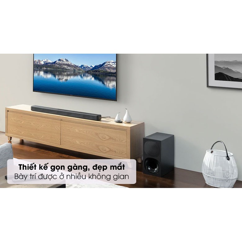 Chiếc loa thanh Sony này sở hữu hệ thống loa 3.1 kênh gồm 1 loa center giúp tái tạo chi tiết các âm thanh chính như lời thoại của nhân vật hay lời bài hát và 2 loa trái, phải tập trung vào âm thanh các âm thanh nền như giai điệu của bài hát và các hiệu ứng âm thanh trong các bộ phim.