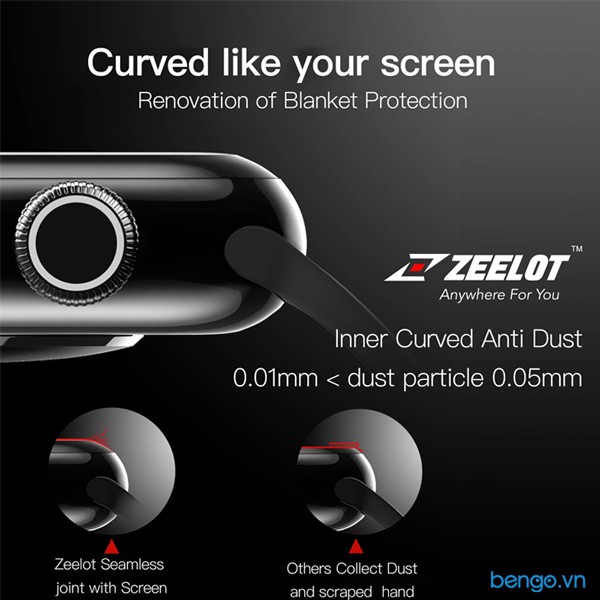 Dán Cường Lực Apple Watch Zeelot Nanometer Clear Full Keo/Full Keo Chống Vân Tay