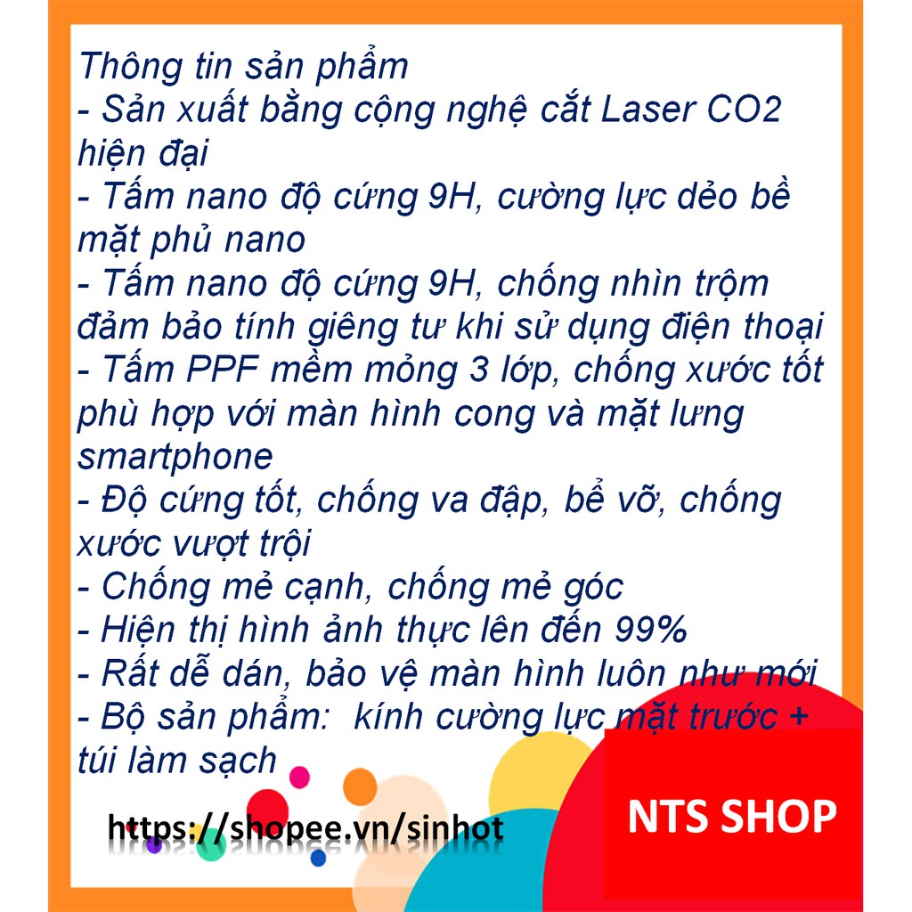 - Tấm nano chống nhìn trộm chất liệu dẻo nhám chống bám vân tay. đảm bảo tính giêng tư khi sử dụng điện thoại