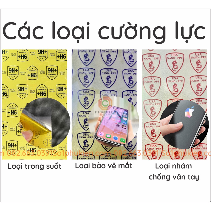 * LOẠI NANO TRONG SUỐT: giúp hiển thị trong suốt tuyệt vời, cảm ứng siêu nhạy, chống trầy xước cực tốt.