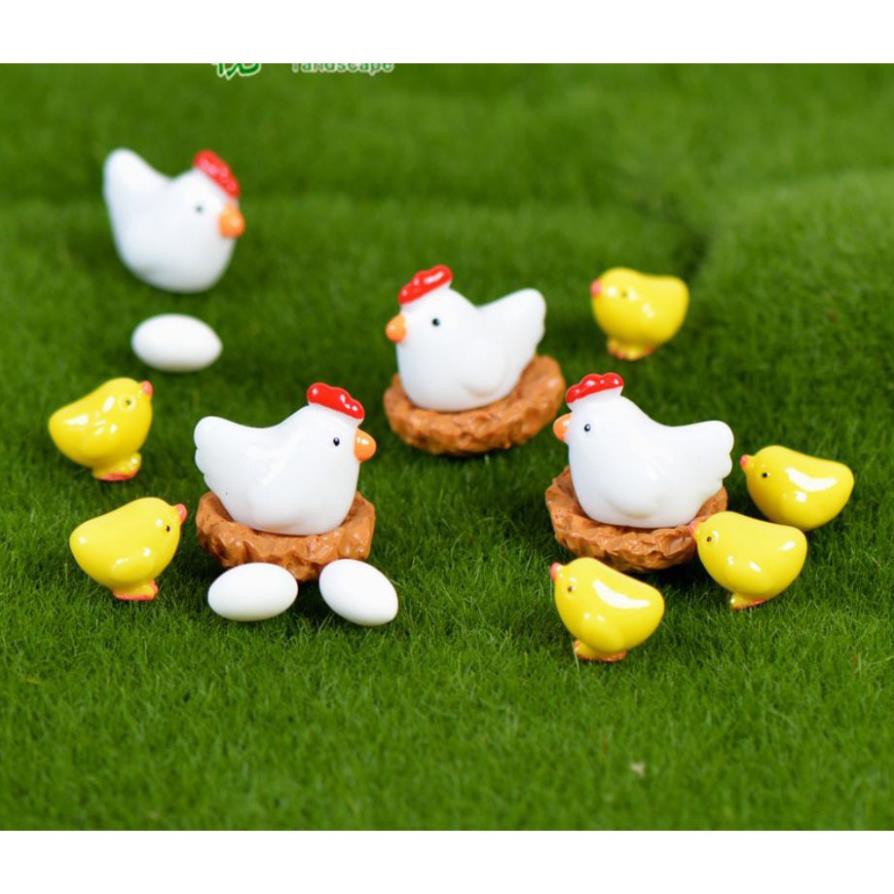 Nhà cửa & Đời sống > Làm vườn > Trang trí vườn || Đàn gà mẹ gà con gà trống mái và trứng trong tổ - mô hình trang trí tiểu cảnhCòn hàng