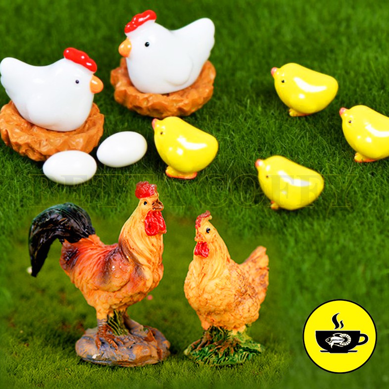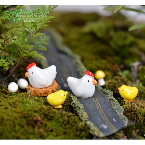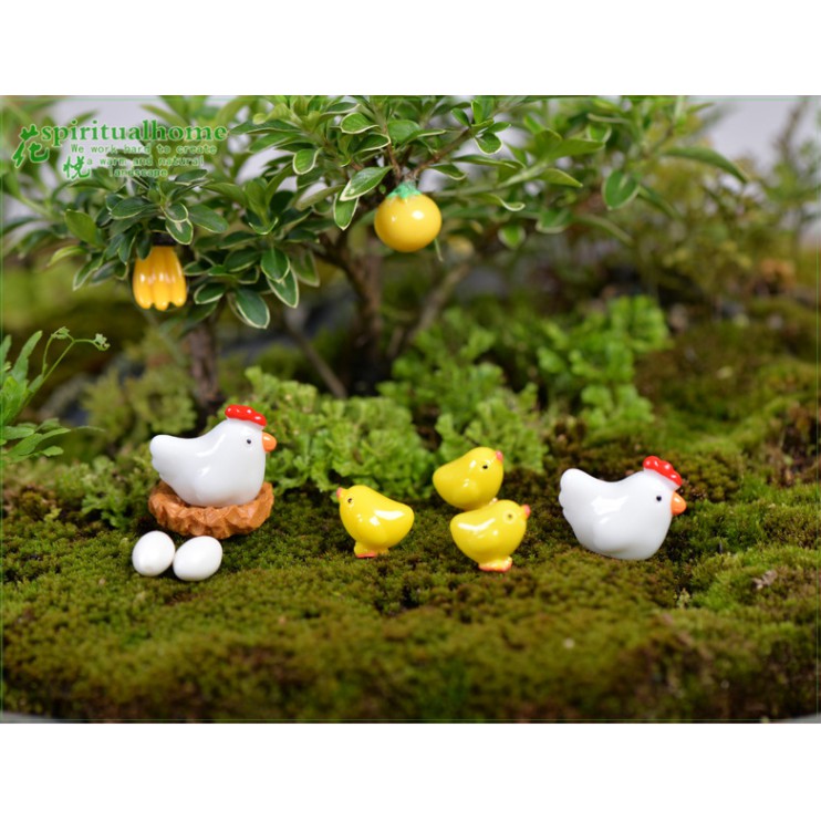 Nhà cửa & Đời sống > Làm vườn > Trang trí vườn || Đàn gà mẹ gà con gà trống mái và trứng trong tổ - mô hình trang trí tiểu cảnhCòn hàng