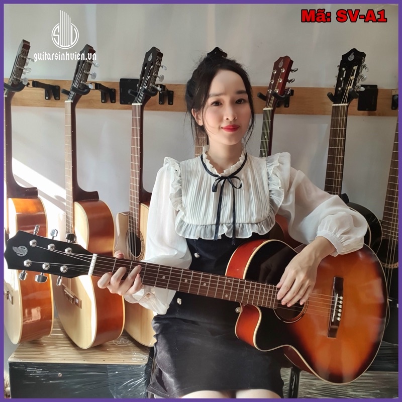 Đàn guitar acoustic có ty chống cong SV-A1 màu cam đen - Tặng 7 phụ kiện - Bảo hành 1 năm - Chuyên cho người mới tập