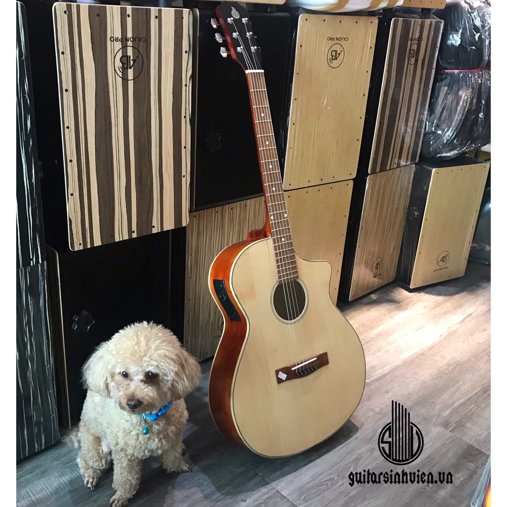 Giới thiệu Đàn guitar acoustic + eq 7545 mặt gỗ thông có ty chống cong