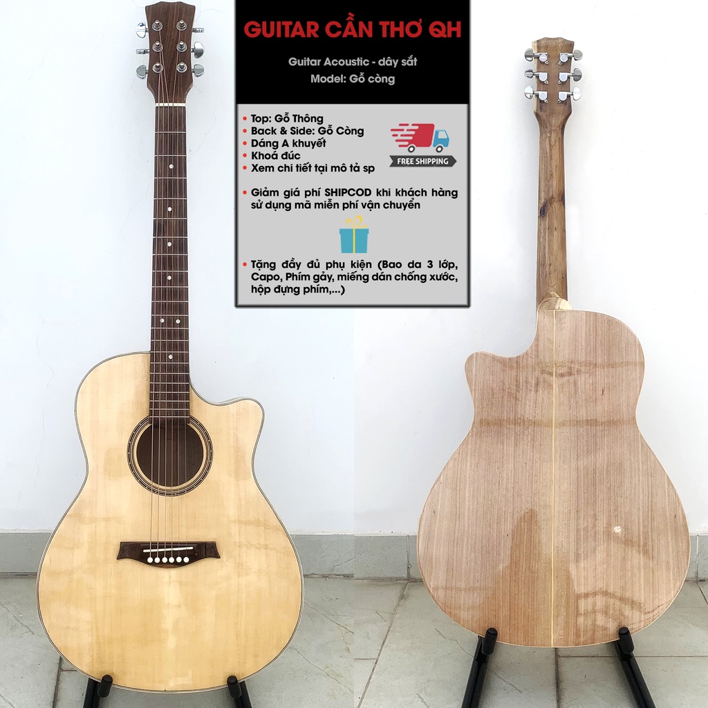 Đàn Guitar Acoustic gỗ Còng nguyên tấm | có ty chỉnh cong cần | BH 12 tháng