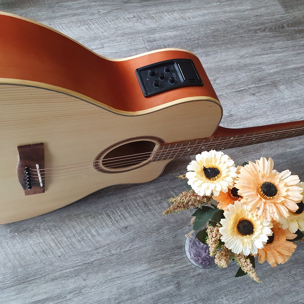 Sở thích & Sưu tầm > Nhạc Cụ & Phụ Kiện > Nhạc Cụ Dây > Guitar & Bass || Đàn guitar acoustic mini 3/4 gắn EQ ra loa - Đàn gọn nhẹ âm vang sáng - Tặng phụ kiện và bao daCòn hàng
