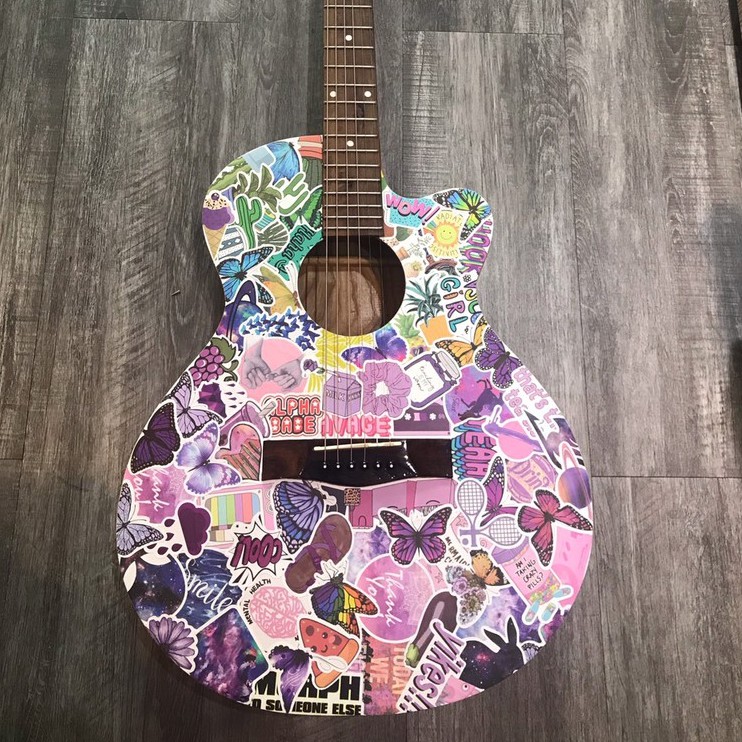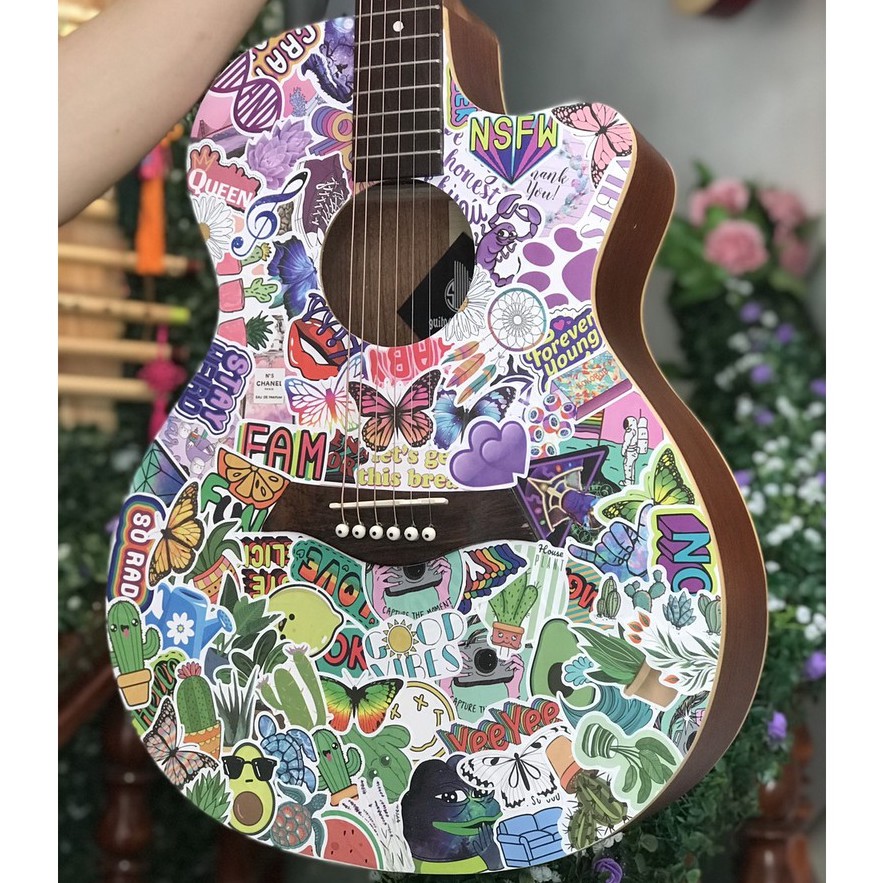 Đàn guitar acoustic trang trí sticker - Đặt mẫu theo sở thích - Tặng 6 phụ kiện kèm theo - Bảo hành 1 năm