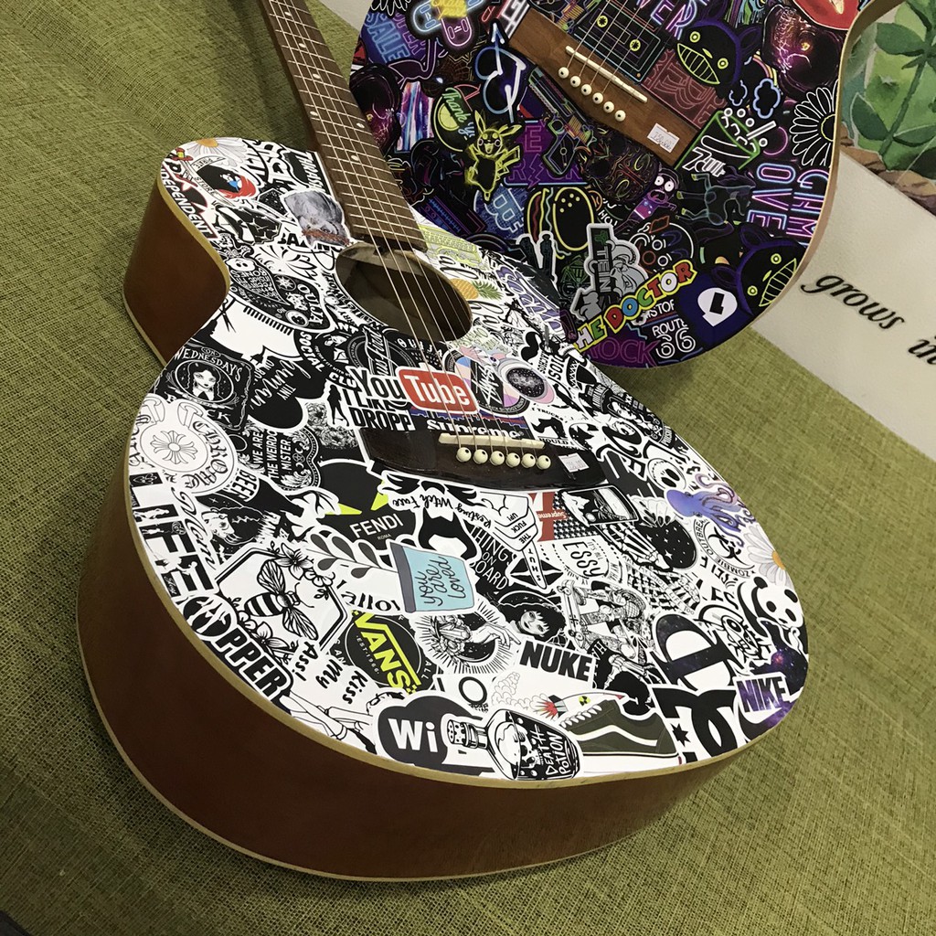 Giới thiệu Đàn guitar acoustic trang trí sticker - Đặt mẫu theo sở thích - Tặng 6 phụ kiện kèm theo - Bảo hành 1 năm