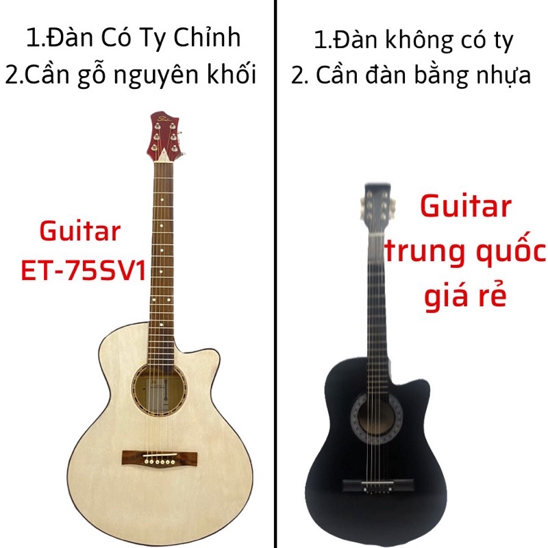 Sở thích & Sưu tầm > Nhạc Cụ & Phụ Kiện > Nhạc Cụ Dây > Guitar & Bass || Đàn Guitar Acoustic Việt Nam Có Ty Chỉnh Cần Nguyên Khối Mã ET-75SV1 Tặng Kèm 15 Món Phụ Kiện Bảo Hành 5 NămCòn hàng