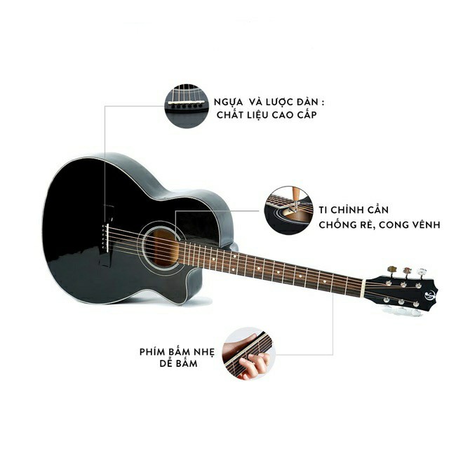 Sở thích & Sưu tầm > Nhạc Cụ & Phụ Kiện > Nhạc Cụ Dây > Guitar & Bass || Đàn guitar acoustic VP SVA+ màu đen cá tính giá rẻ dành cho người mới bắt đầuCòn hàng