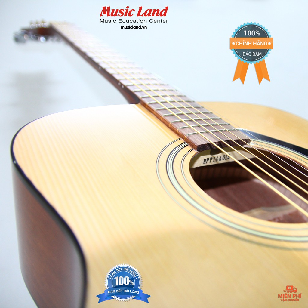 - Mặt đàn được làm bằng gỗ nguyên tấm chất lượng cao, tạo nên âm thanh ấm và sáng chuẩn tiếng của Guitar.