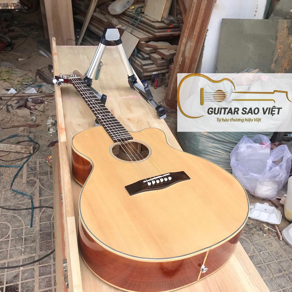 Đàn Guitar Full gỗ thịt nguyên tấm sơn tự nhiên SV-15HD xản xuất tại Việt Nam (Tặng kèm bao da capo phím gẩy giáo trình)