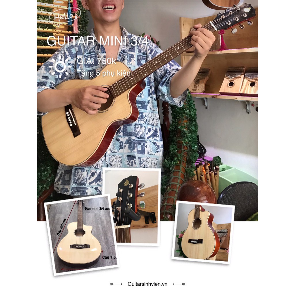 Sở thích & Sưu tầm > Nhạc Cụ & Phụ Kiện > Nhạc Cụ Dây > Guitar & Bass || Đàn guitar mini 3/4 có ty chống cong - Chuyên tập chơi - Tặng 3 miếng sticker, bao da và phụ kiện - Bảo hành 1 nămCòn hàng