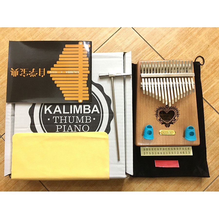 Đàn Kalimba 17 phím Gỗ Mahogany Yael Gỗ Trái Tim Tặng Kèm Harmonica 24 Lỗ Màu Ngẫu Nhiên - HÀNG CÓ SẴN