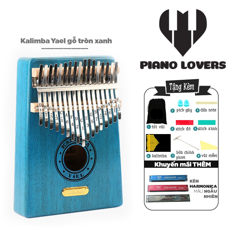 Đàn Kalimba 17 phím Gỗ Mahogany Yael Gỗ Xanh Tặng Kèm Harmonica 24 Lỗ Màu Ngẫu Nhiên - HÀNG CÓ SẴN