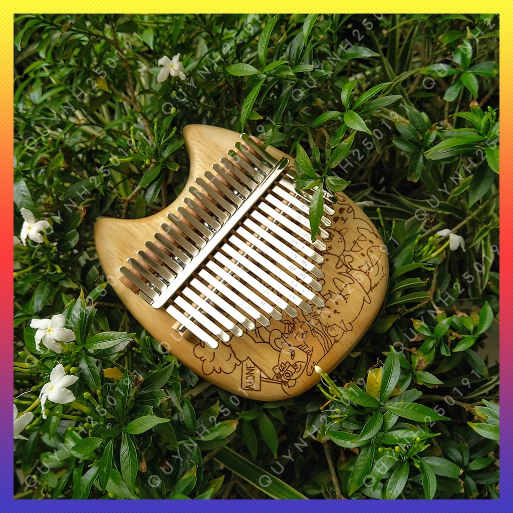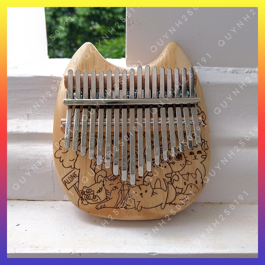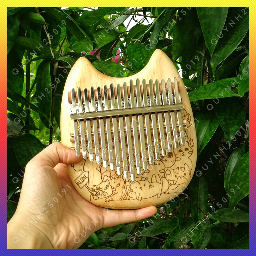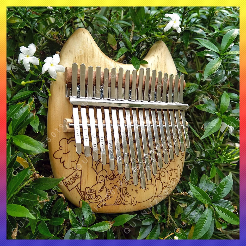 Đàn Kalimba 17 Phím Hình Mèo Chất Lượng Tốt - Khắc Hình Mèo Kute - Gỗ Tốt Và Âm Thanh Chuẩn