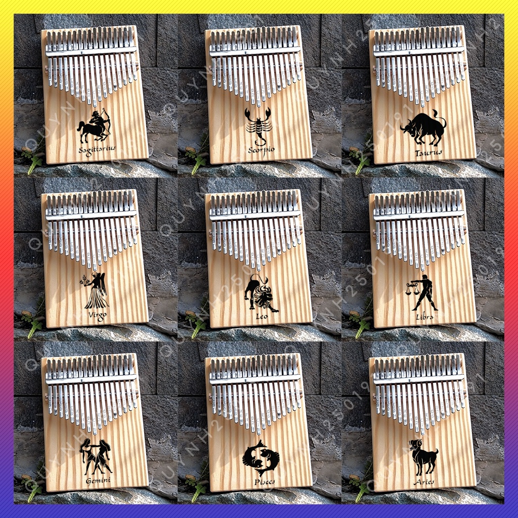 Đàn Kalimba 17 Phím Khắc Hình 12 Cung Hoàng Đạo - Đàn Kalimba Nguyên Khối Gỗ Thông Cao Cấp Tặng Full Phụ Kiện- Giao hàng 3 - 9 ngày.
