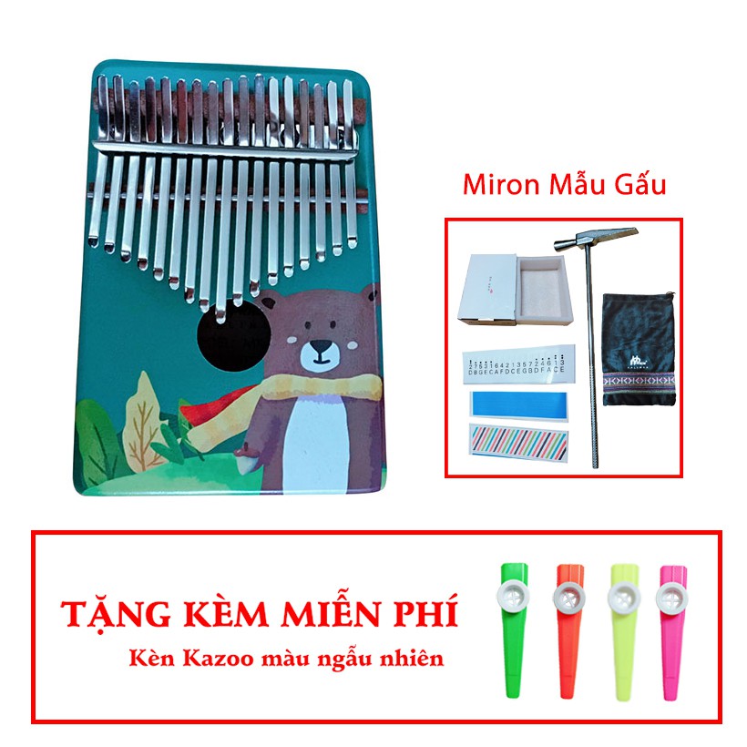 Đàn Kalimba Gỗ cao câp 17 phím Thương hiệu Myron Con Gấu TẶNG kèm kèn Kazoo màu ngẫu nhiên - HÀNG CÓ SẴN