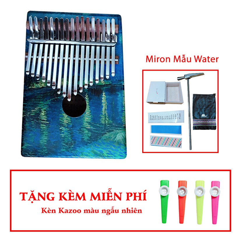 Đàn Kalimba Gỗ cao câp 17 phím Thương hiệu Myron họa tiết Water TẶNG kèm kèn Kazoo màu ngẫu nhiên - HÀNG CÓ SẴN