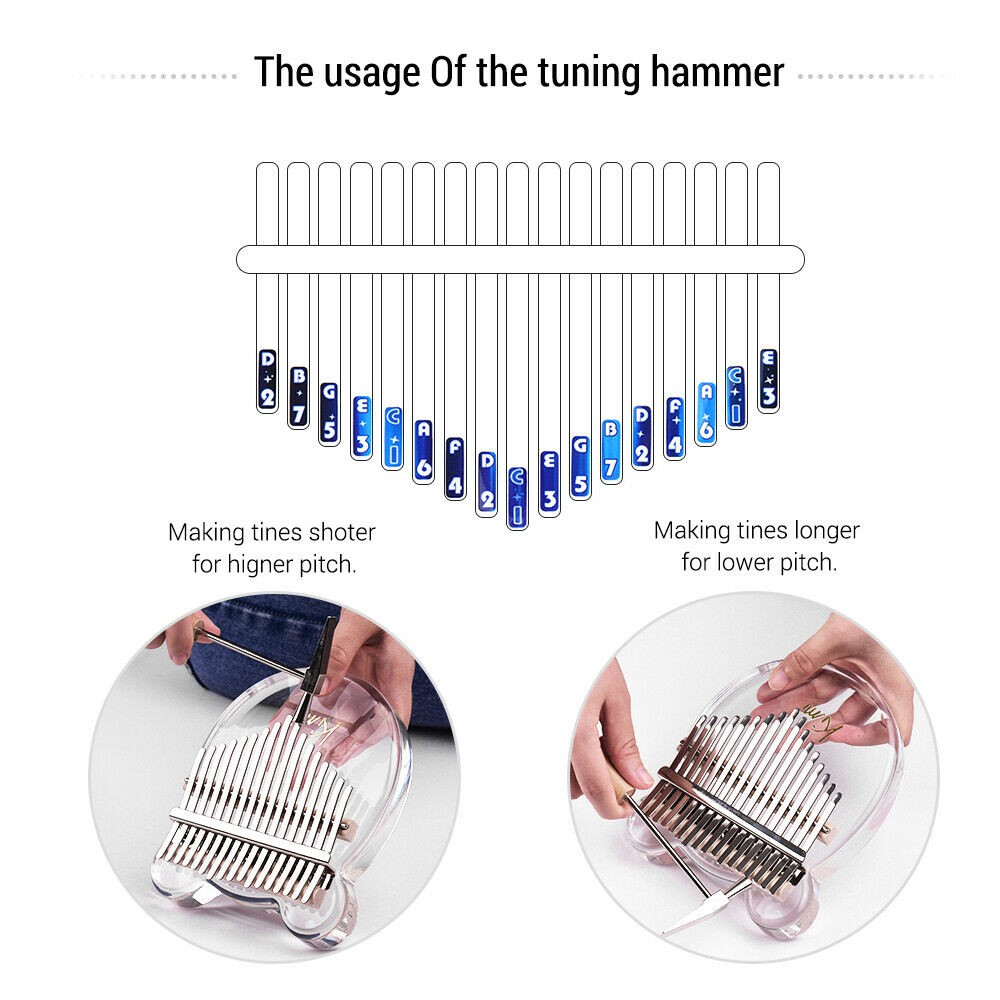 * Dễ dàng chơi và học nhanh, chỉ cần cầm nó trên tay và gõ các nốt bằng ngón tay cái để tạo ra âm thanh rõ ràng và du dương; với một chiếc búa nhỏ để điều chỉnh dễ dàng.