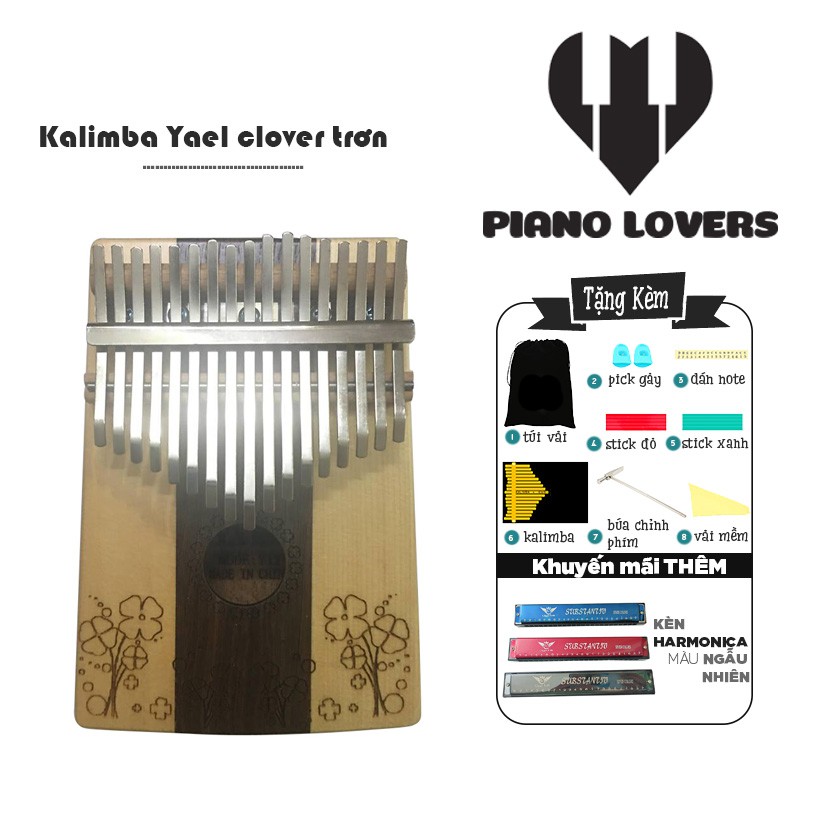 Đàn Kalimba Yael Clover trơn 17 phím Tặng Kèm Kèn Harmonica Màu ngẫu nhiên - HÀNG CÓ SẴN