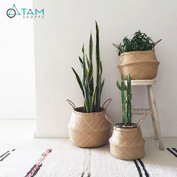 Những chiếc giỏ cói đựng chậu cây xinh xắn phong cách trang trí đơn giản hiện đang là một trong những món đồ Decor đang Hot khó có thể bỏ qua. Giỏ cói đựng chậu cây trang trí được làm thủ công tỉ mỉ, chắc chắn, thích hợp để chậu cây xanh trong nhà đẹp mắt.Giỏ cói màu tự nhiên gần gũi, trang nhã cùng nhiều kích thước. Giúp bạn dễ dàng hô biến các điểm nhấn cây xanh mát mắt mọi ngóc ngách trong nhà mà không sợ bẩn hay mất thẫm mỹ nội thất.