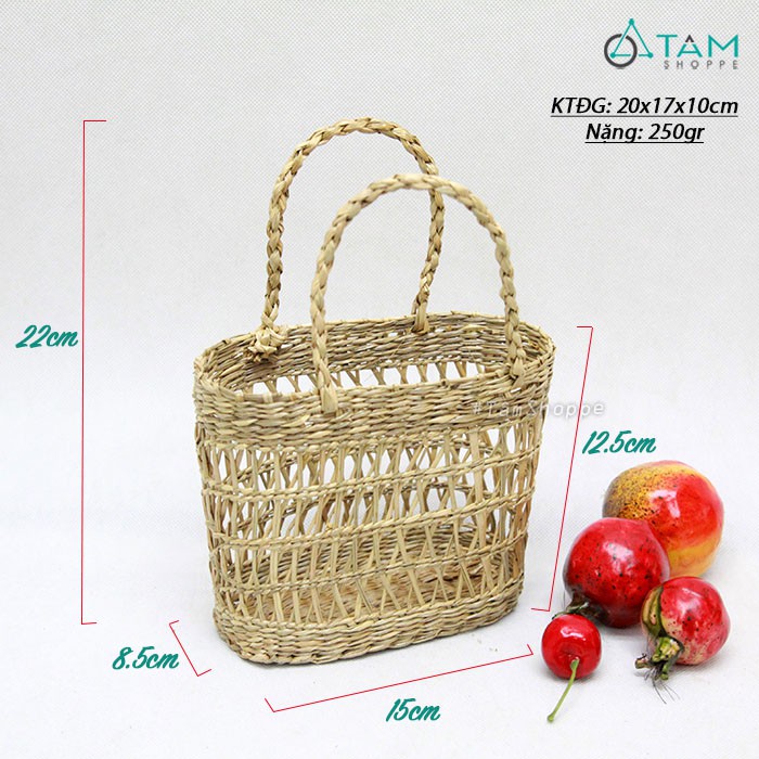 [ĐAN KĨ DÀY ĐẸP] Giỏ cói quai xách đi chợ cỡ nhỏ C22cm T-MTRN-07